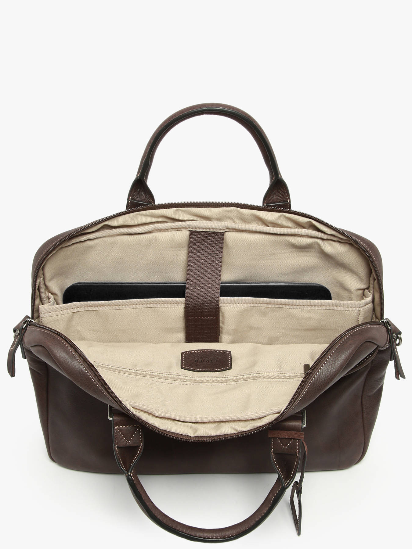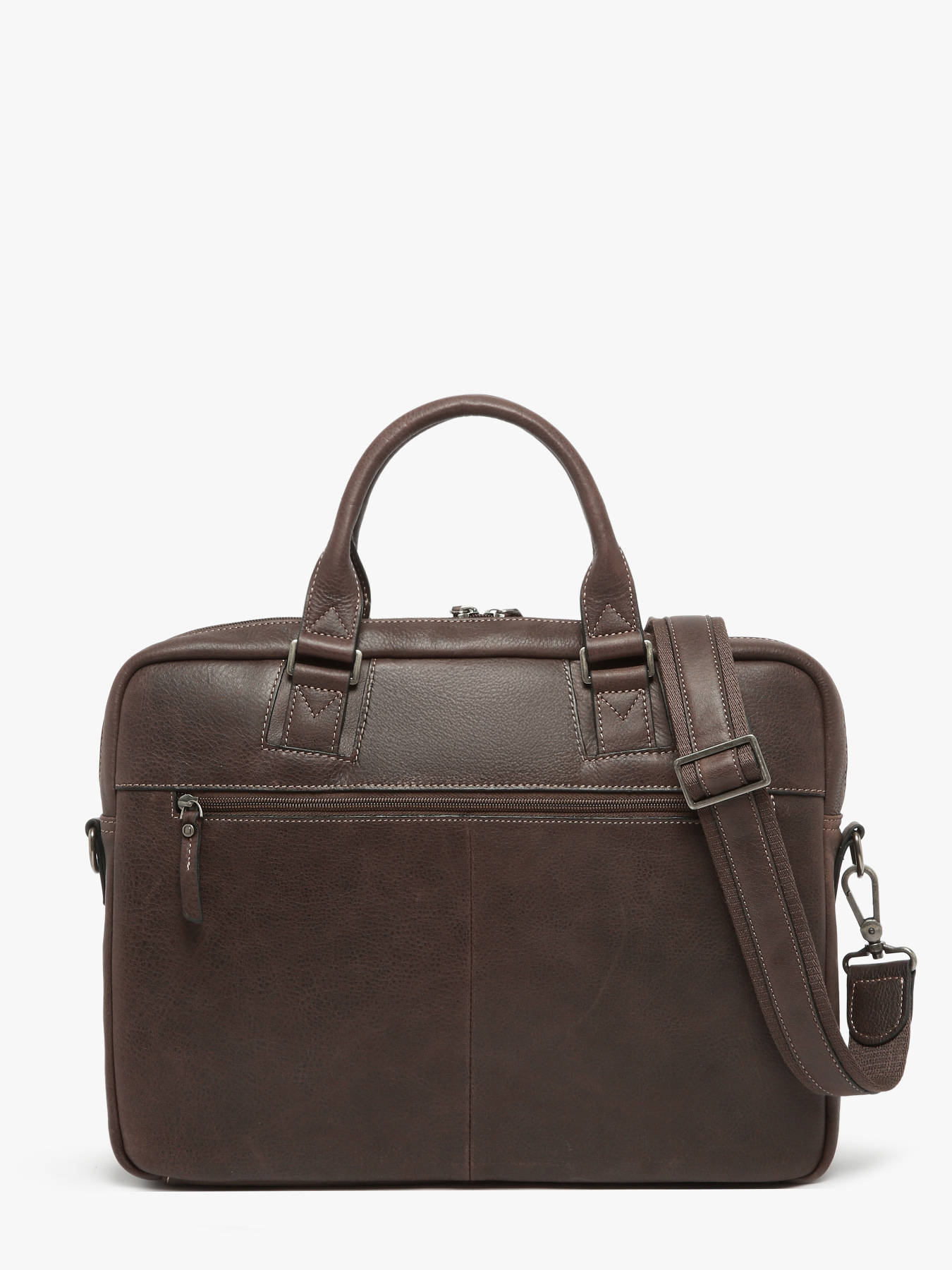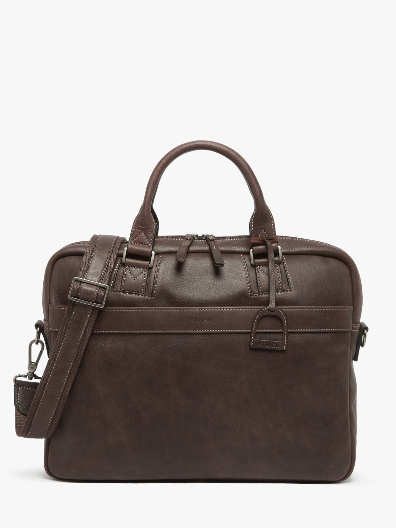 Gentlemen, don't hesitate any longer and be stylish when you go to work. Etrier offers you this superb briefcase from the Spider line, made of high quality leather. It has two outside pockets, a zipper on the top to secure your belongings and an adjustable and removable shoulder strap so you can carry it by hand or cross-body. Inside, you can easily slip your 15"" laptop, a notepad, an A4 file, your small items in the zipped pocket, etc. Your colleagues will be jealous of your splendid document holder.