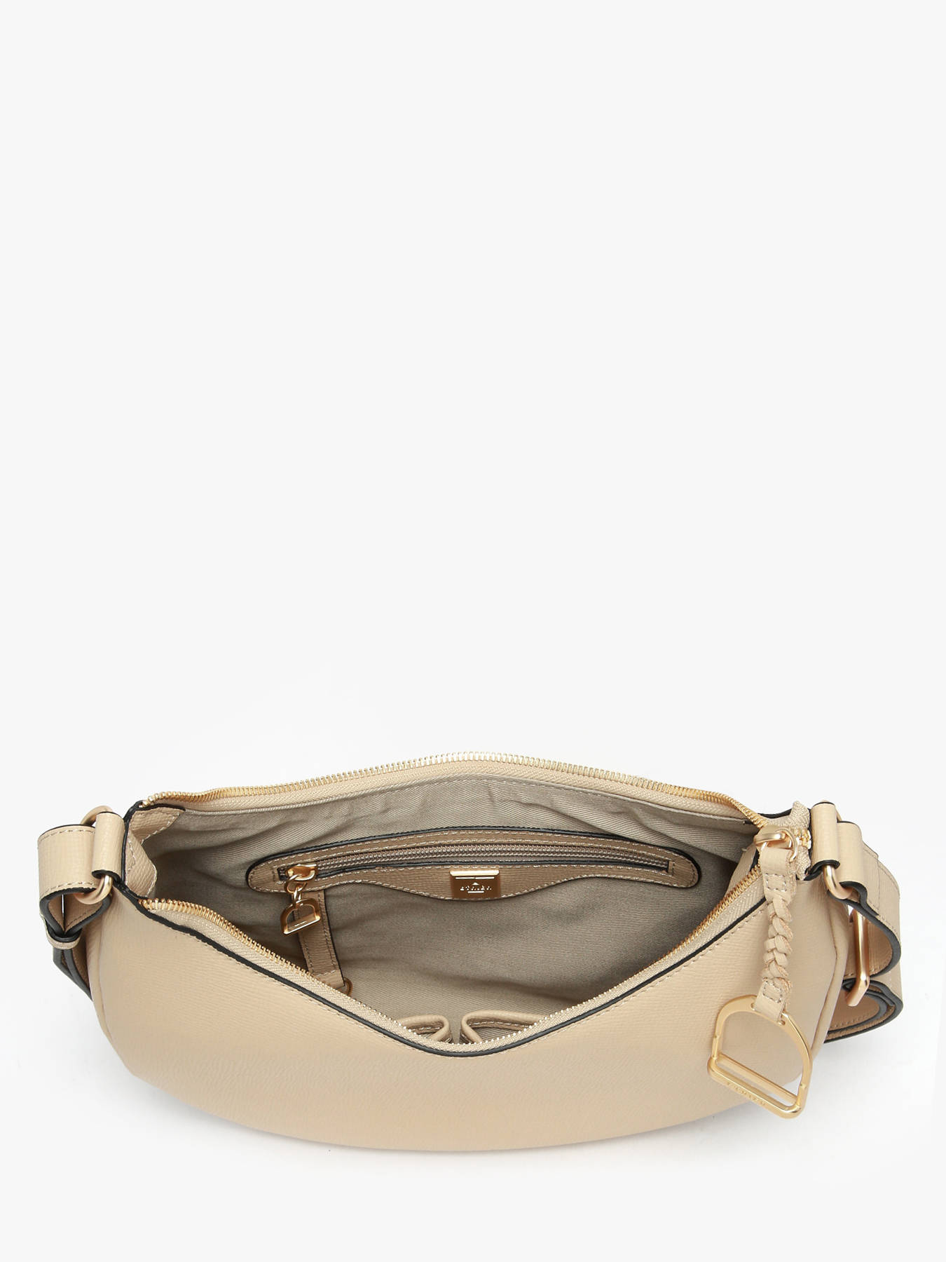 The TORSADE Etrier shoulder bag is crafted from textured cowhide leather, enhanced by an elegant braid that cascades over the bag and ends with a refined charm. This detail adds a unique and sophisticated touch to the accessory. The zip closure ensures the security of your belongings, while the adjustable and removable shoulder strap offers multiple carrying options, providing optimal comfort for everyday use. At the back, a zipped pocket allows quick access to essentials. Inside, the bag features a spacious main compartment complemented by two slip pockets and one zipped pocket to organize your items efficiently. Combining style and functionality, this bag perfectly embodies the timeless elegance of the Torsade line, ideal for those seeking refinement and practicality in daily life.